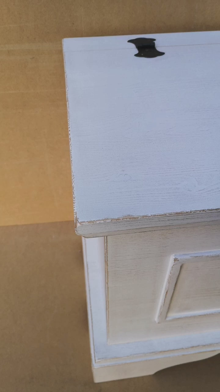 Costruita in legno massello d’abete, questa cassapanca non è solo esteticamente elegante ma anche estremamente robusta e durevole. La finitura bianco shabby dona un aspetto vintage ricercato, perfetto per qualsiasi arredamento classico o rustico.